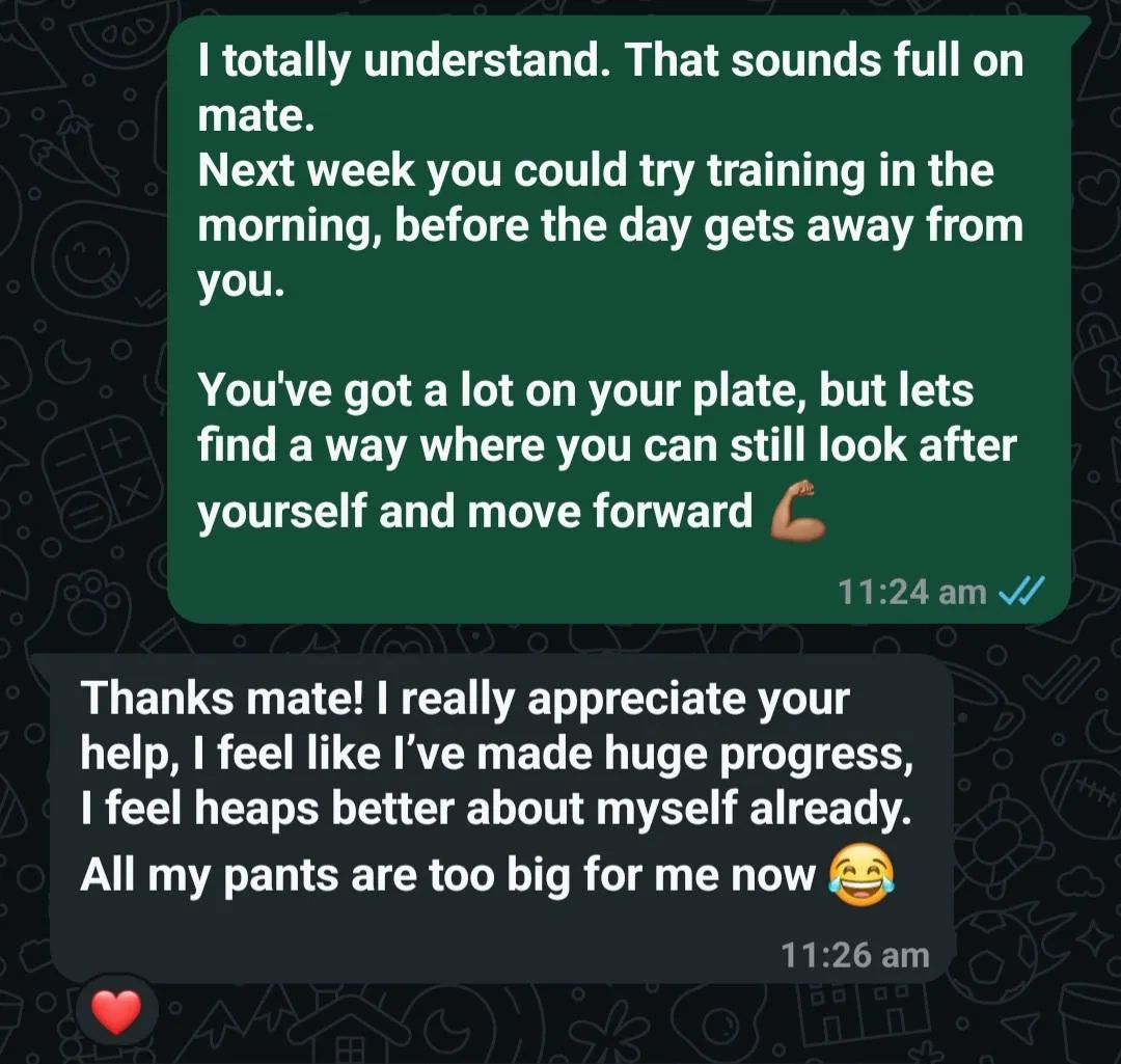 It’s normal to feel skeptical - especially if you’ve done programs in the past that didn’t deliver. The Reset + Rebuild System has helped hundreds of men and women drop fat, build muscle, and rebuild their confidence. The difference here is in the structure, accountability, and personalisation. If you follow the plan, it works - full stop. I’ll make sure you do it right, stay consistent, and finally get the results you’ve been chasing.