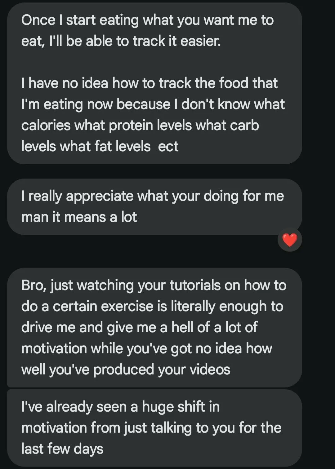 Absolutely. You’ll check in with me every week, and I’ll personally review your progress, update your plan, and keep you accountable.